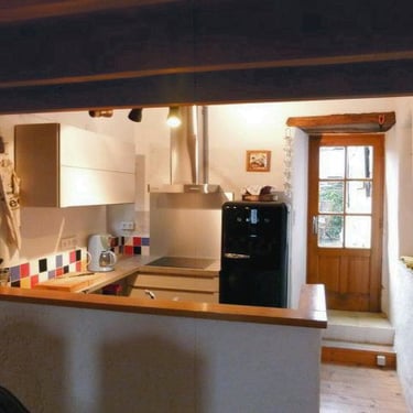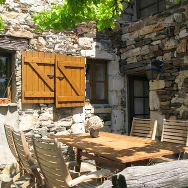 Dans les monts d'Ardèche, à 620 m d'altitude, au calme, notre gîte 6 personnes (en bas, entre une ruelle et l'autre gîte), également en pierre, vous accueille pour de confortables vacances.