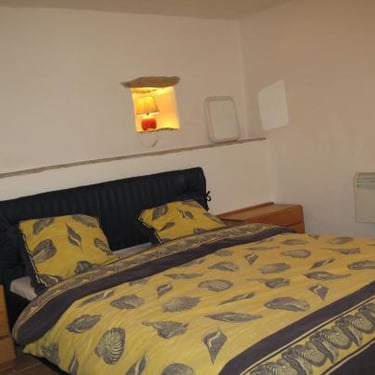 1 chambre à coucher avec lit double d'une largeur de 1,60 m (couette de 2,20m sur 2,00), lavabo et douche.